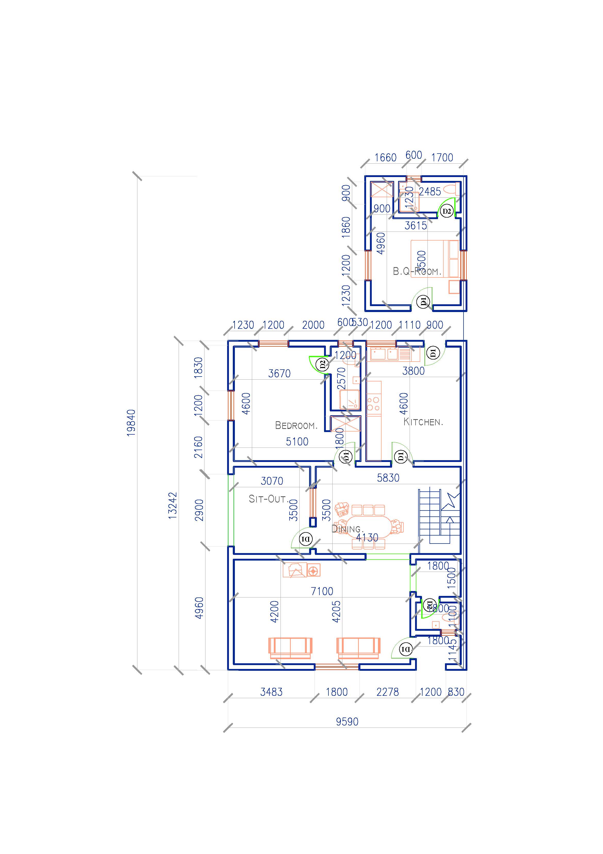 3 Bedroom Detached Bungalow Houses + BQ room